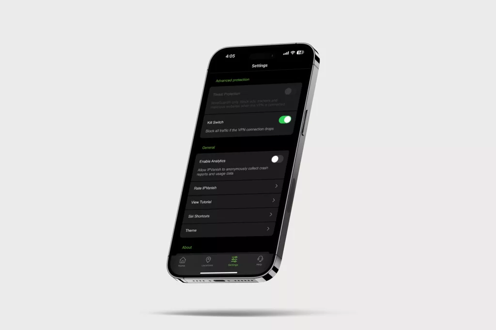 Updating your IPVanish app to v4.14.0 on your iOS device will add the VPN kill switch feature toggle to the Settings screen.